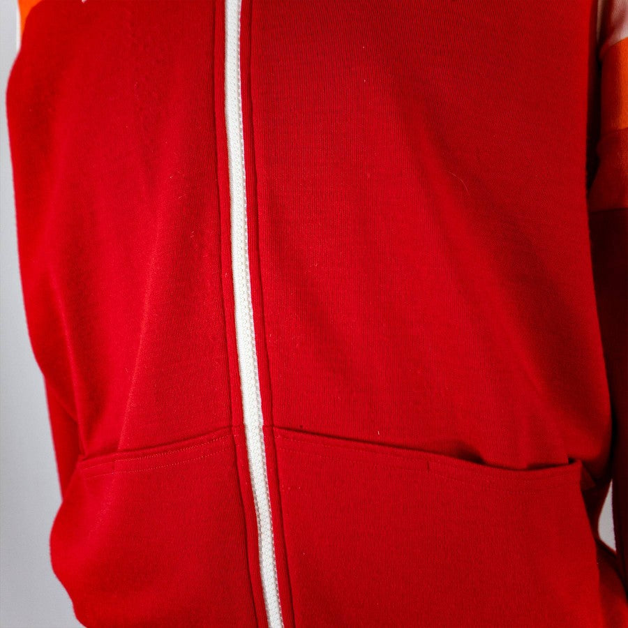 Tuta di colore giallo e rosso realizzata dalla Pouchain per la stagione 1979/1980.
