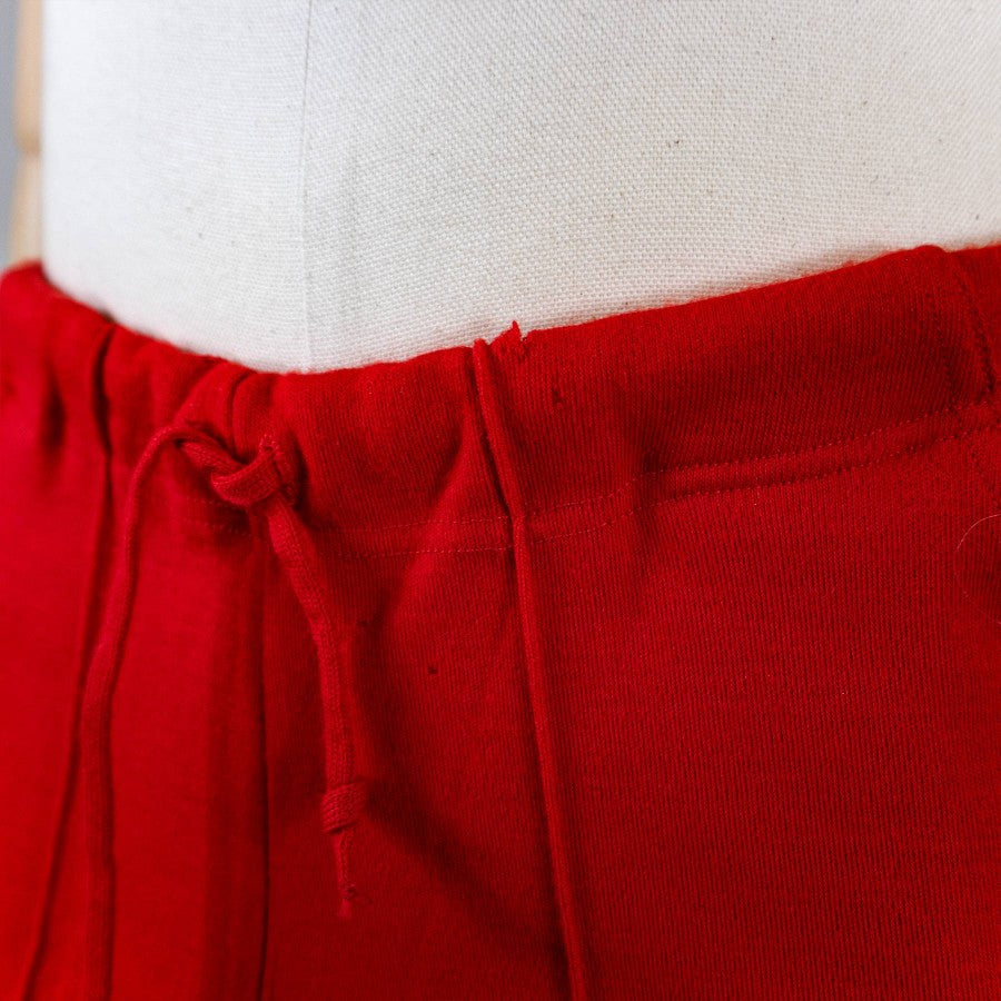 Pantaloni di colore rosso con laccio in vita. Logo P ricamato all'altezza della caviglia.