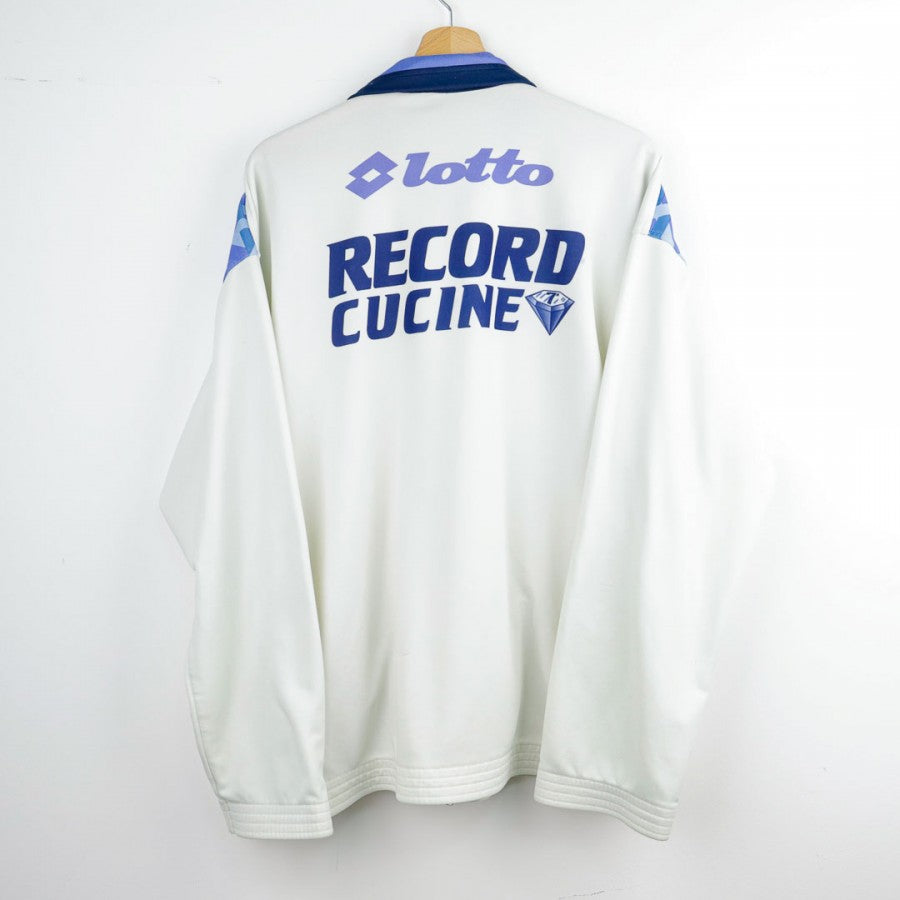 Tuta del Napoli a maniche lunghe prodotta dalla Lotto per la stagione 1994/1995. Sul fronte: logo sponsor commerciale Record Cucine in sublimatico, Sponsor Lotto ricamato su lato destro e stemma Ssc Napoli lato cuore. Sul retro è presente in dimensione più grande sia lo sponsor tecnico che lo sponsor commerciale .